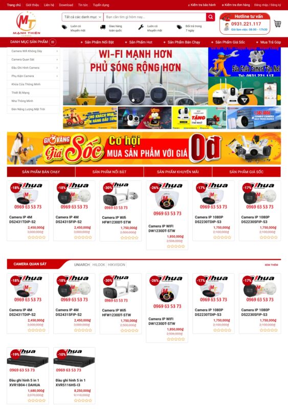 Giao diện thiết kế web bán camera, thiết bị giám sát chuyên nghiệp