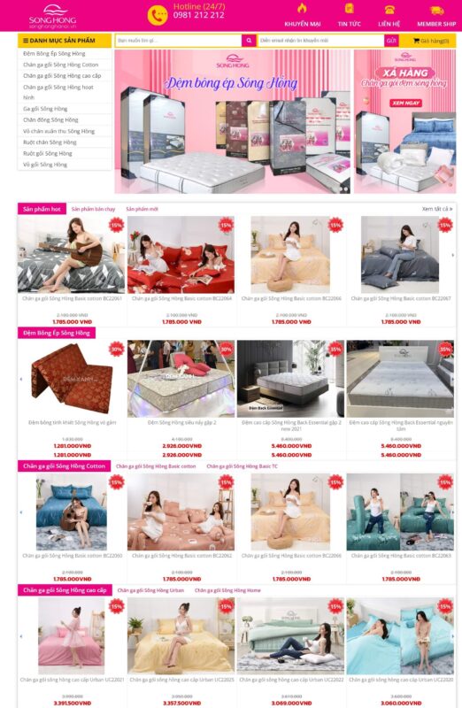 Giao diện website bán chăn ga gối đệm đẹp, chuẩn seo