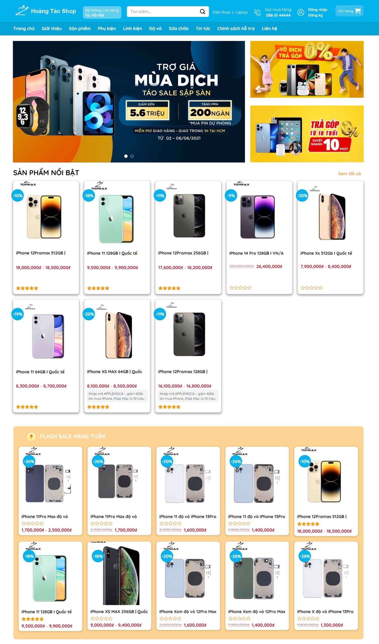 Giao diện web bán điện thoại, phụ kiện điện thoại
