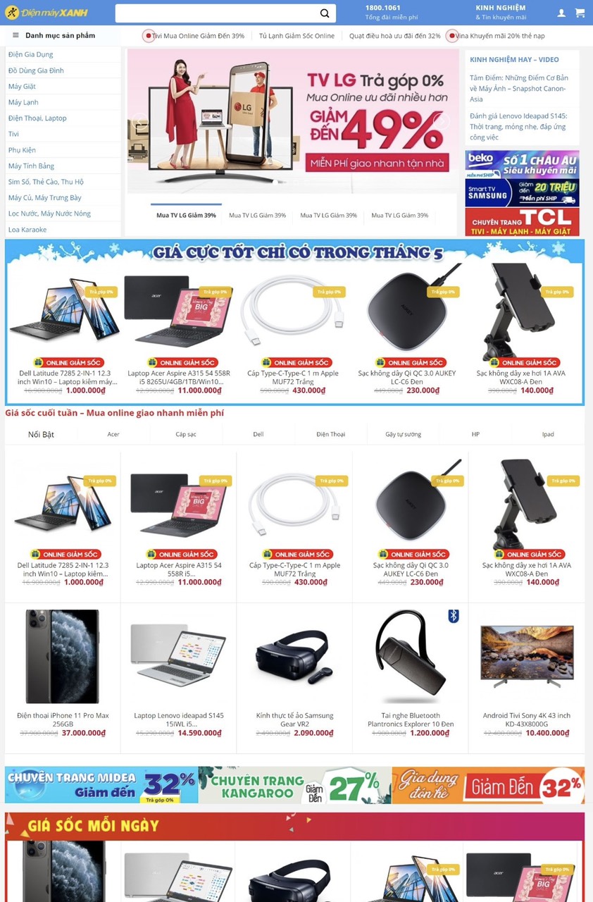 Mẫu website bán hàng giao diện tương tự Điện máy xanh