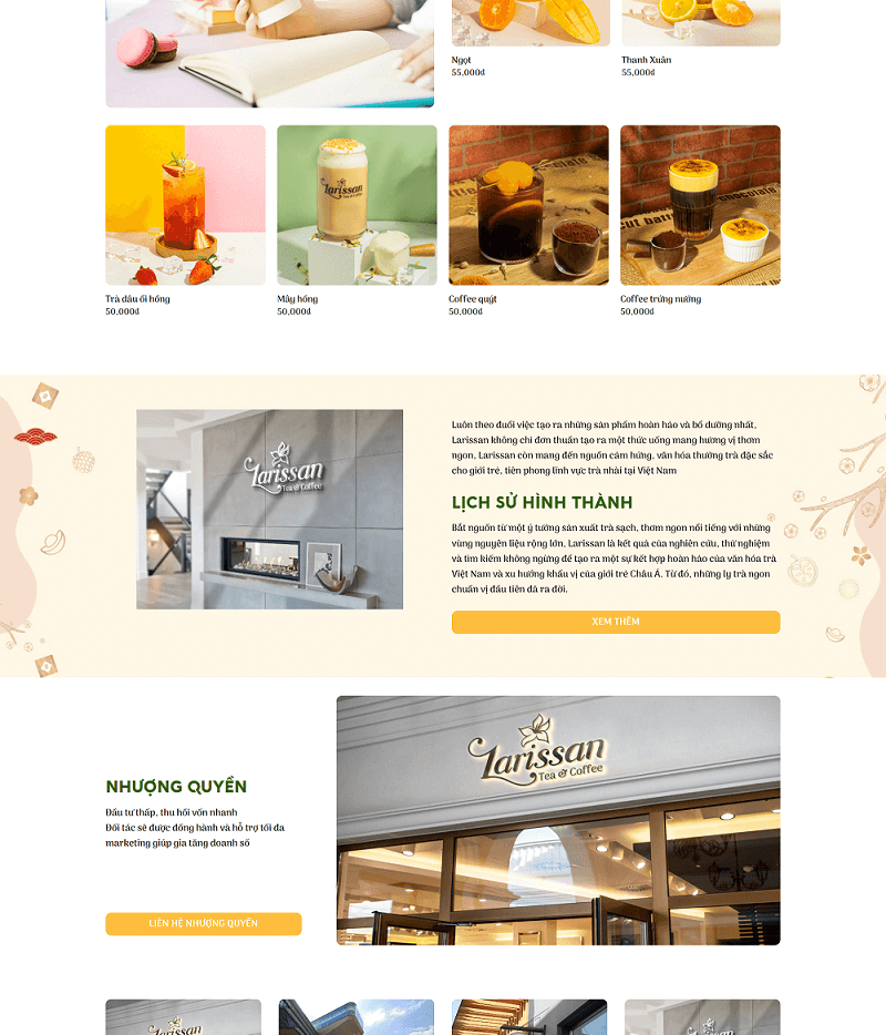 Giao diện web trà sữa, trà hoa quả hấp dẫn